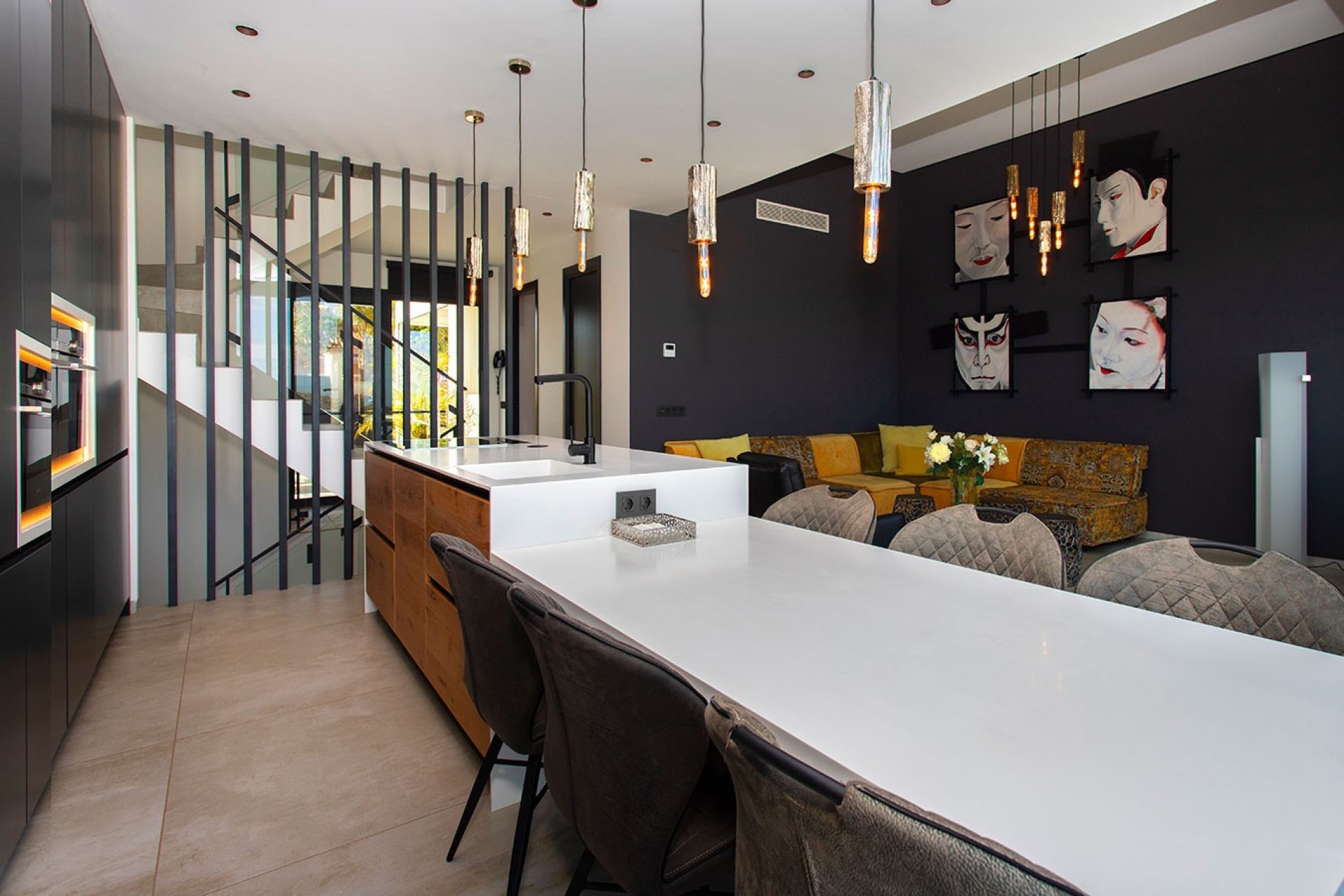 Esta hermosa y reciente propiedad combina arquitectura moderna, acabados de alta calidad y una ubicación excepcional con impresionantes vistas a las montañas y al mar. Con 252 m² de superficie habitable distribuidos en tres plantas, esta villa ofrece espacio, luz y confort en abundancia. La cocina abierta es un verdadero punto fuerte: todos los electrodomésticos están integrados de manera elegante y una isla central con mesa para 6 personas es perfecta para cenas y largas veladas con familia o amigos. Grandes ventanales corredizos proporcionan mucha luz natural y conexión directa con el exterior. La vivienda cuenta con 3 amplios dormitorios, cada uno con baño en suite con acabados en azulejos de alta calidad y materiales naturales, además de un aseo de invitados. La zona de lavandería con lavadora y secadora integradas aporta funcionalidad y estética en toda la vivienda. En el exterior, disfrute de una gran terraza soleada con pérgola bioclimática y una piscina infinita de 20 m² con cubierta eléctrica, ideal para disfrutar del sol todo el año. La zona polivalente con sauna, espacio de oficina y área de entretenimiento/fitness se puede adaptar según sus necesidades: wellness, gimnasio en casa, hobbies o espacio adicional. Extras: Suelo radiante en la planta baja y en los baños Aire acondicionado Paneles solares Garaje (único en la región) La vivienda está perfectamente mantenida y refleja calidad. Los muebles de alta gama se pueden adquirir opcionalmente. Ubicación privilegiada: cerca del campo de golf de Rojales, tiendas, restaurantes, bares acogedores y el parque natural protegido El Recorral, un oasis verde con senderos, lagos y áreas de picnic. Excelentes conexiones con otras localidades. ¿Interesado? No dude en contactarnos hoy mismo!