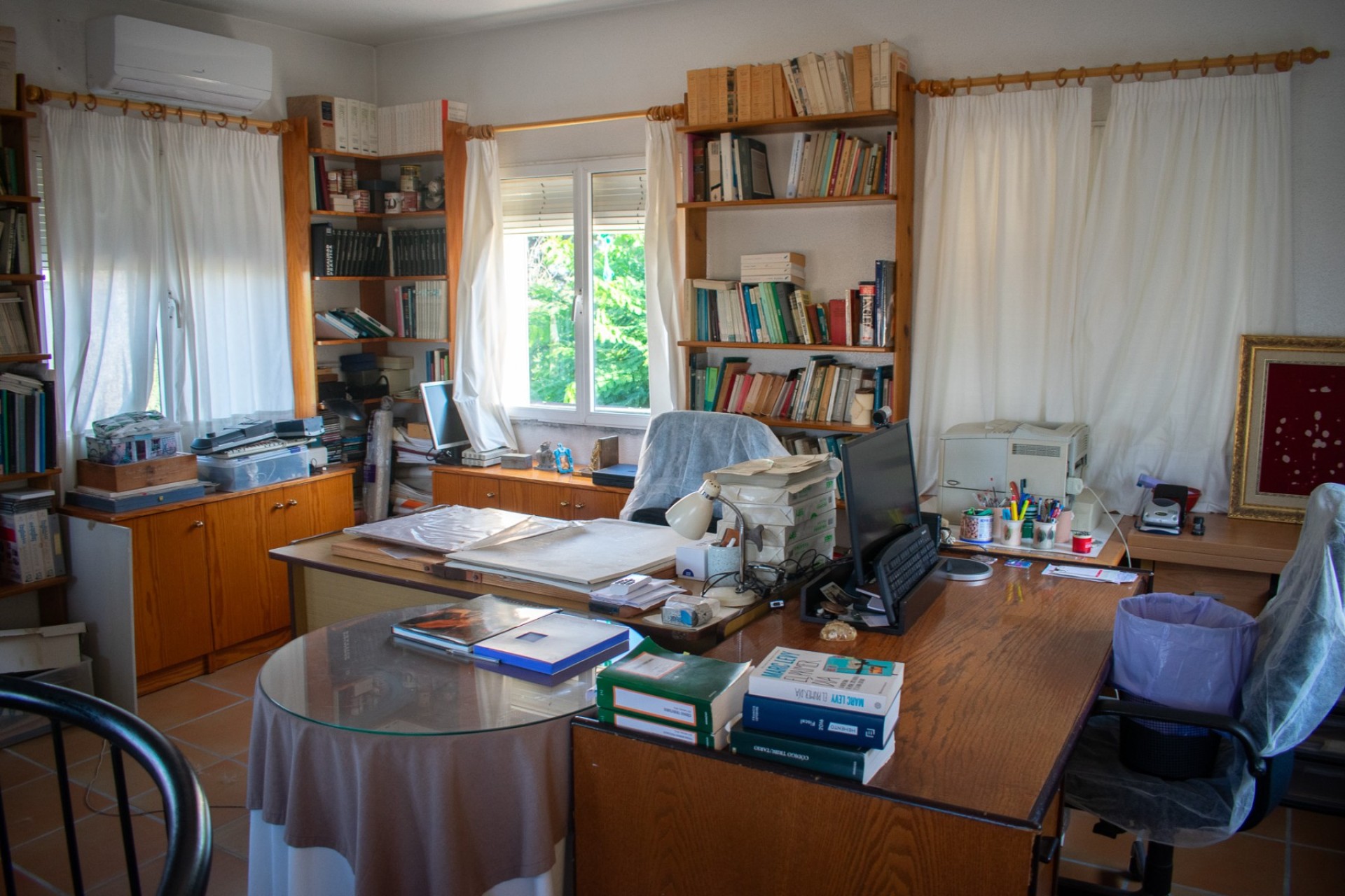 Au premier étage , on trouve un grenier aménagé en espace ouvert, actuellement utilisé comme bureau , entouré de baies vitrées panoramiques qui inondent l'espace de lumière naturelle et offrent une vue sur le jardin.