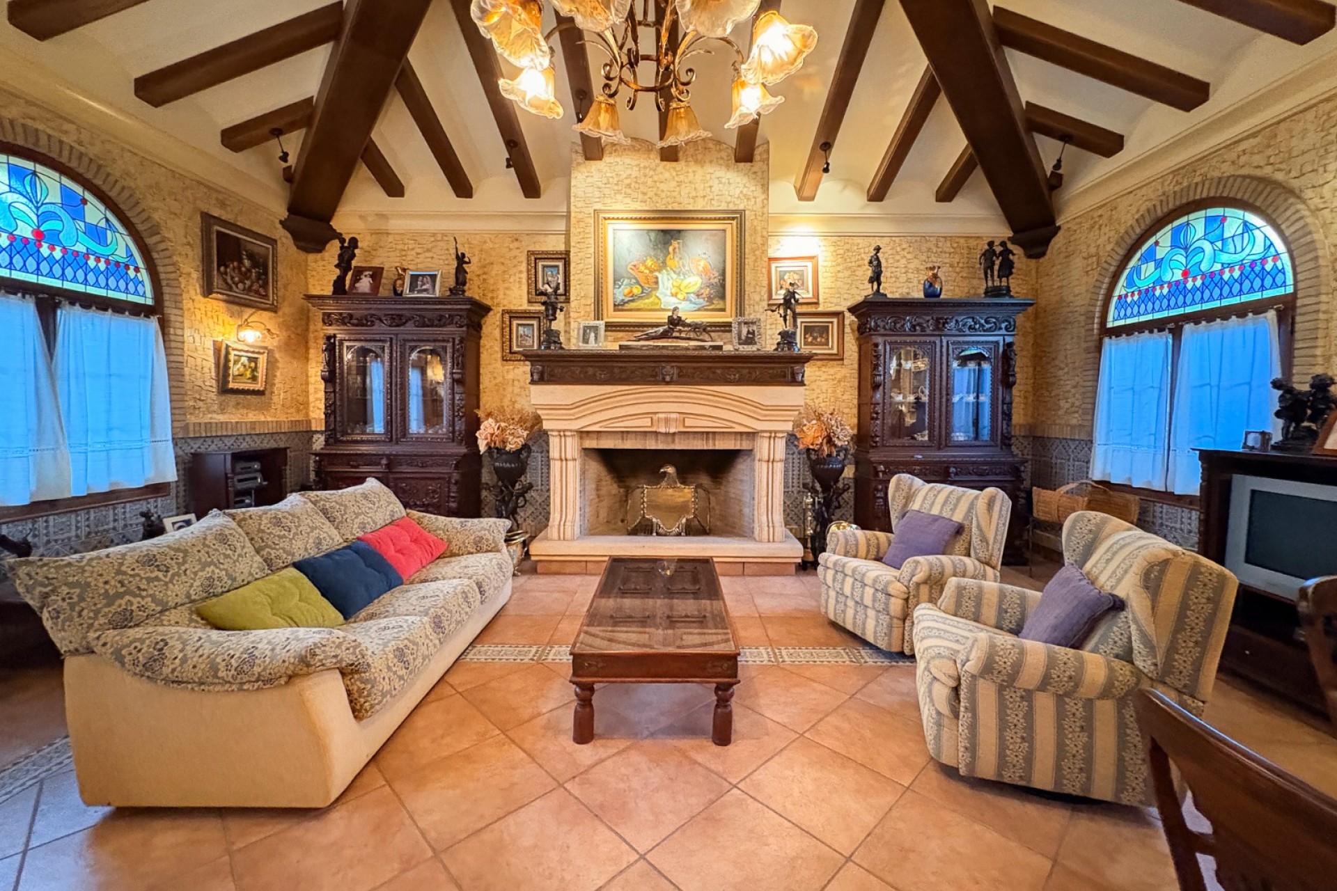 Le domaine comprend un spectaculaire bâtiment indépendant, conçu comme salle de réception pour les grands rassemblements , construit en pierre naturelle, en bois et avec des poutres apparentes , dans le même style colonial que le reste de la propriété. Ce bâtiment est réparti sur deux étages :