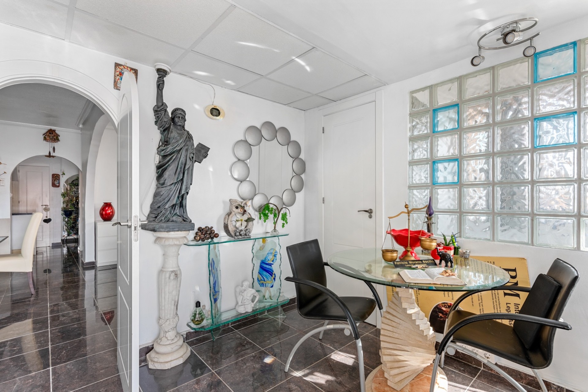 Bij binnenkomst in de villa wordt u begroet door een ruime entreehal die u welkom heet in een functionele en lichte ruimte. Op deze verdieping bevindt zich een privé-kantoor, ideaal voor thuiswerkers, samen met een klein gastentoilet dat extra gemak biedt.