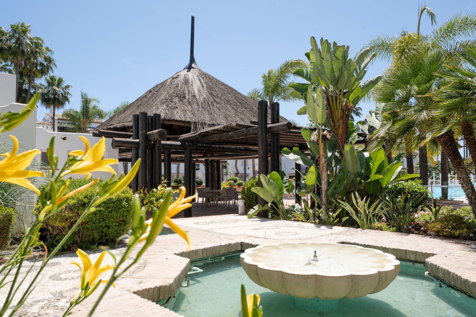 Jardín Persa, established in 1992, is a serene, Arabic-inspired community with lush gardens, fountains, and direct access to Marbella’s seafront promenade. Offering both privacy and luxury, this apartment is the ultimate Marbella residence.