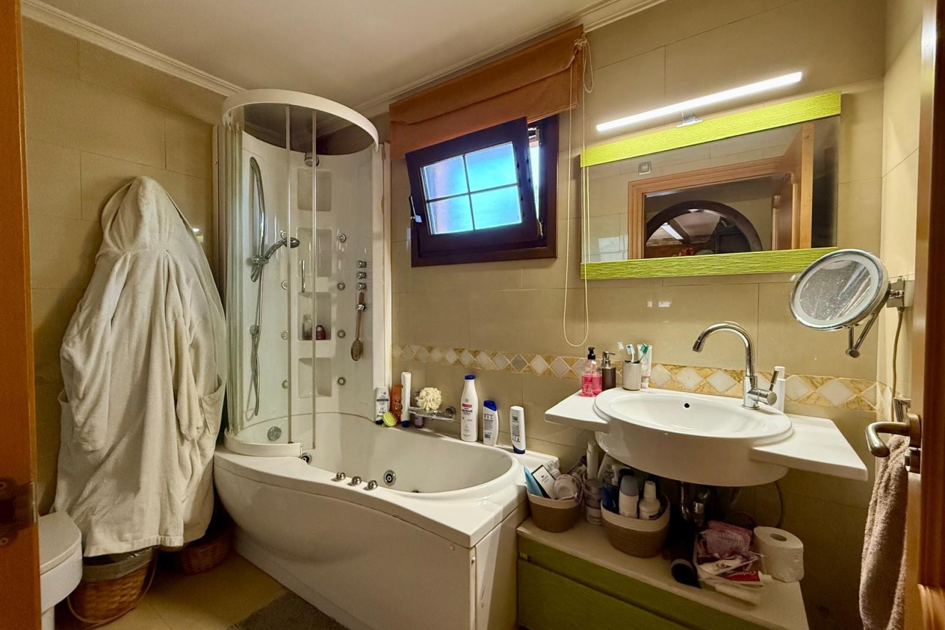 Impressive country-side property situated in the lovely lemon grove area in-between San Miguel de Salinas and the Torrevieja Saltlake: partly walled-in, partly fenced-in square-shaped land area of 10.000 m2 with lemon grooves, a large swimming pool (14 x 7), bbq-house, etc; apart from being connected to the municipal water-supplier, the property has its own well with water for irrigation; air conditioning and central-heating through-out the villa; a rock-solid construction of 400 m2 distributed over a basement (55 m2), a ground floor with a garage (55 m2) , first floor and also an attic: the entrance hall is followed by a centrally situated dining- and sitting area, 3 bedrooms, 2 bath rooms, laundry room and garage, on upper floor is a TV-room, 2 bedrooms, a very spacious shared bathroom and a roof-covered terrace; to the property also belongs a 340 m2 large separate ware-house, a sort of barn, ideal for keeping some 15 horses, or more. Local property tax, including residuals: 1.000€. Price: 675.000 €.