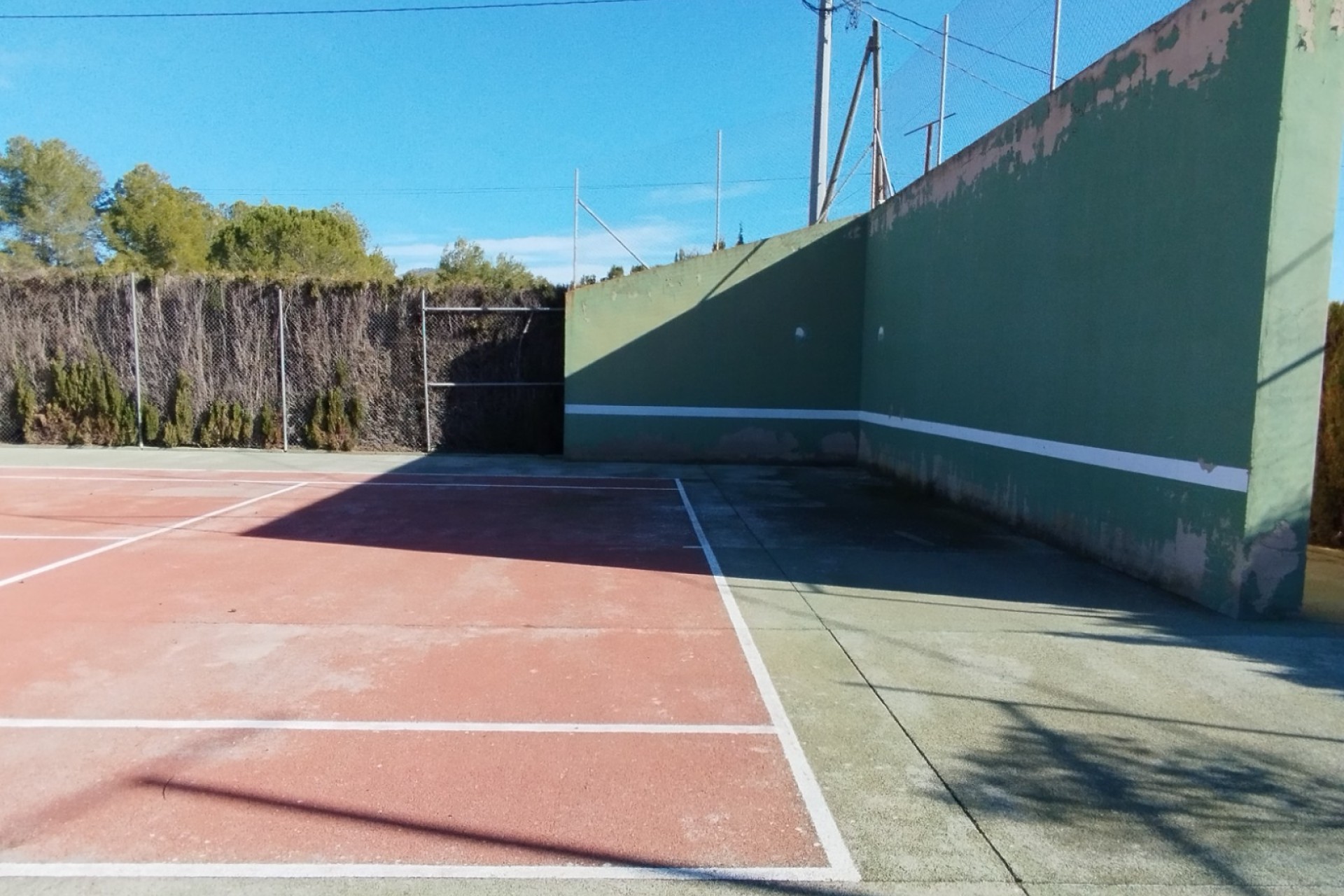Behind the Tennis Court are the three garages, one of which is massive and could easily be turned into a Guest Apartment as it already has electricity and water connected.