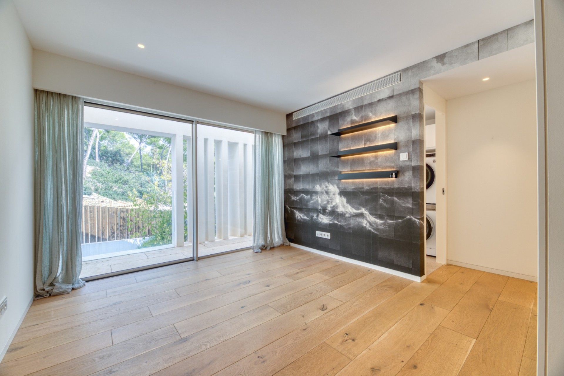 What is there better than to live in a modern, spacious villa, which offers splendid sea views and has its own pool? Find out more about this dream property in the renowned GRAND FOLIES complex south-west on the island. The modern villa offers approx. 280 m² of living space (approx. 493 m² constructed area) on the first floor with a very spacious living / dining area with open kitchen, guest WC and patio (5m²-). From this living level there is access to the outside area with covered terrace (41m²), private swimming pool (20m²), lounge area (15m²), further open terrace and sea and mountain views. On the second floor there are three bedrooms, each with its own en-suite bathroom and dressing area. All three bedroom suites offer fantastic views of the mountains and the sea. A special feature of this house is another large open space on the second floor with adjoining utility room and guest WC, which could be converted into a 4th bedroom with en suite bathroom. In the basement there is a technical room, further rooms for free use and direct access to the underground garage, where there is a private parking space. There is another uncovered parking space in front of the house entrance. The communal area offers beautifully landscaped gardens, a large pool area with sea views and fitness room, as well as a clubhouse with concierge service, heated indoor pool, whirlpool, dry sauna, steam sauna, further fitness room, offices for private use and a bar area with a beautiful outdoor terrace. The modern luxury residence New Folies is located in the popular Cala Llamp bay in Port d'Andratx in the southwest of Mallorca. The bay is known for the Gran Folies Beach Club with direct sea access, restaurant, bar and swimming pool. The harbor of Port d'Andratx is only a few minutes away by car, but is also easily accessible on foot. Here you will find a variety of restaurants, bars and boutiques. In the neighboring village of Camp de Mar there is a fantastic sandy beach and the famous Golf de Andratx golf course. The island's capital, Palma de Mallorca, is around 25 minutes away by car. Organize your viewing with us now and don't wait until somebody else buys this stunning villa! Online viewings can be also arranged.